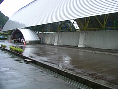 公称は大型車4台+普通車18台、ミニサッカー場や資料館の駐車場を合わせると50台程度は停められるから特に大きなイベントでも重ならない限り不足しないと思う。 | |