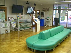 営業時間中は結構広い休憩&情報コーナーあり。ソファや情報機器も完備している。 | |