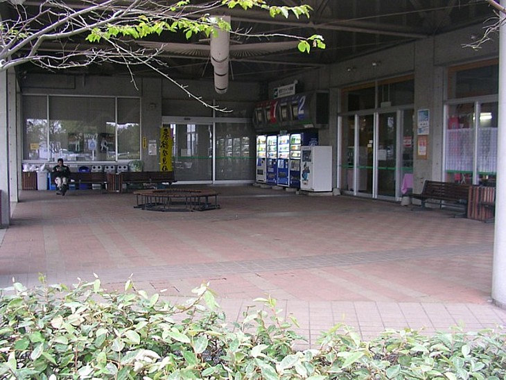駅舎右隅の広いフリースペース。休日の朝には開店時間を待つ大勢の来店客が見られる。