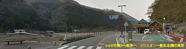 営業中は駅舎内の狭い休憩施設が利用できる。暖かい季節なら200mほどR246側から河原の公園に降りて水遊びも可能。 | |