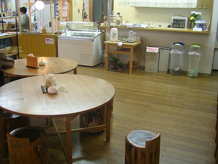 メイン駅舎「雪だるま物産館」の一角には休憩コーナーを兼ねた軽食用のテーブルが置いてある。