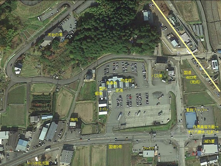 国道9号と483号の交差点に建つ大型駅。コンビニが目の前で人気の高い「天女の湯」も徒歩圏にある。