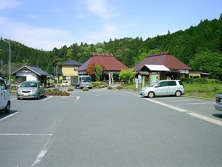 駐車場から駅の全景を。規模の割に駐車場は広いが、春と秋の休日には観光客での混雑も珍しくない。