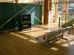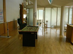 駅舎内にはスペースなし。別棟の小さなプレハブが観光案内所を兼ねている。屋外に休憩テーブルあり。 | |
