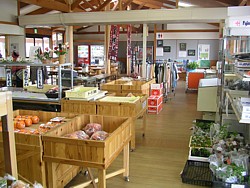 ● 10〜16時(1〜3月は15時)、農産品をメインに家庭用品まで扱う。日本海(直江津港か?)が近いためか冷蔵ケースに鮮魚 | |