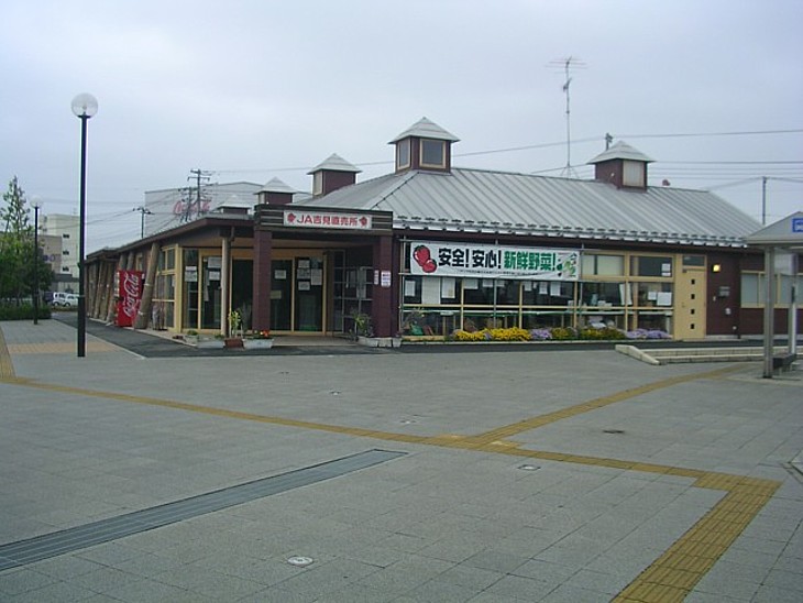 石畳側から見た野菜直売所。東松山から吉見の一帯には道の駅や直売所が少ないため客数は多い。