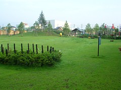 敷地内の芝生広場でのんびり遊べる。周辺道路も歩道が整備されており、散歩ルートには不足しない。 | |