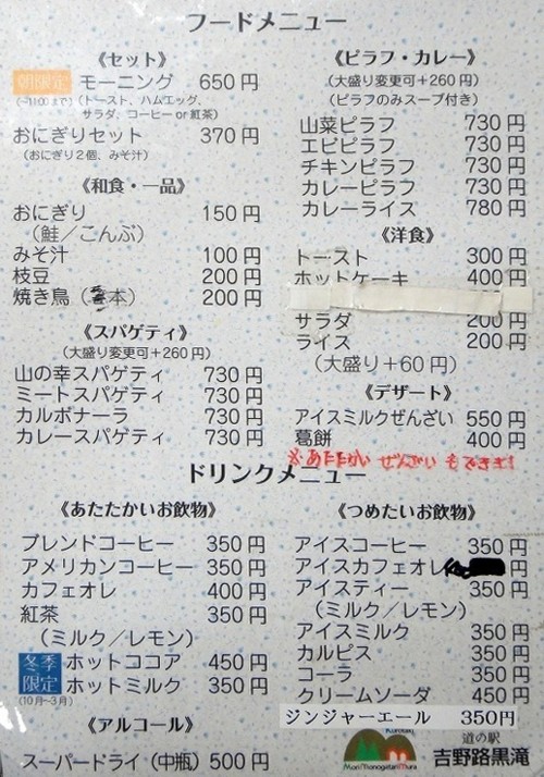 特に屋台などはないが食事処が軽食を兼ねている。コーヒー・ソフトドリンク・トースト・くずもちなどメニューも豊富。 |