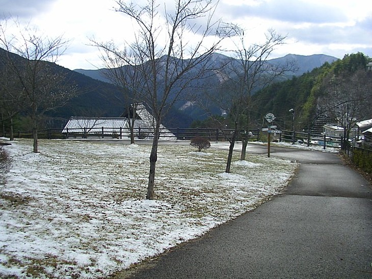 うっすらと雪に覆われた「ちびっこゲレンデ」。緩やかな芝生の斜面で、犬の散歩などには最適のスペースだ。