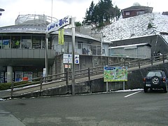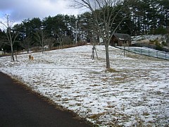すぐ前の高台にある「ちびっこゲレンデ」は混んでいなければ犬の散歩に最適。雪が積もっていたら大喜びで走り回るだろう。 |