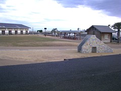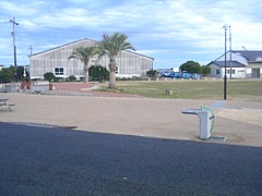 駅舎前の芝生はかなり広い。その他にも漁港周辺に散歩できるルートが多く、不満は全く感じない。 | |