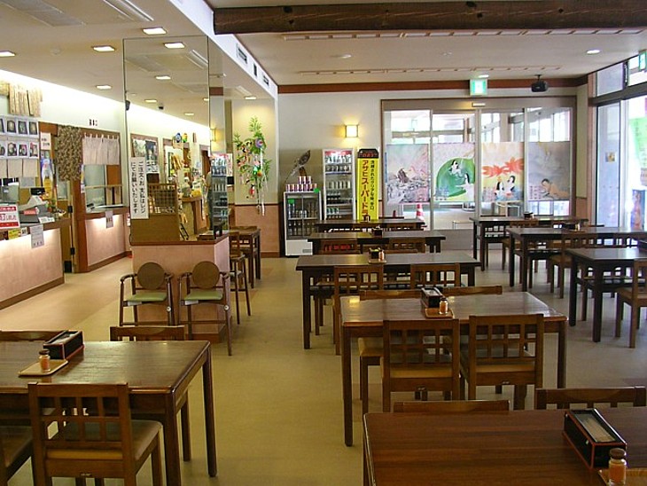 清潔な雰囲気の食事処。観光センターっぽいのは間違いないが「秘湯 湯西川温泉」の入口としては平凡だ。