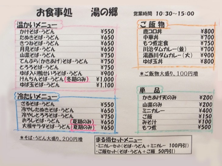 2014年春のメニュー。その後の値上げはないらしいが地域性は乏しい。どこにでもある観光地の食堂だね。