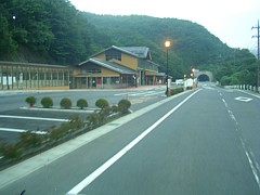 中: 道の駅の駐車場入り口側から駅舎を撮影。二階は温泉施設のみ、実質的には一階の手前だけが駅の施設だからそれほど広くはない。