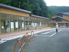 右: 地下に野岩鉄道の湯西川駅が設けられている湯の郷観光センターが道の駅を兼ねている。一階に物産館と観光案内、二階に入浴施設がある。