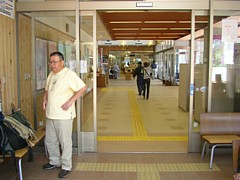 中: 奥の駐車場から駅舎を撮影。手前は身障者専用の駐車スペース、すぐ前のトイレ施設までスロープが設けられている。身障者に優しい施設、ね。