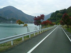 ここからは流れ込み部分に架かる玄倉川橋を渡り、左折して湖畔一周のルートを辿りたい。狭い1車線の周回路だが一方通行のため余計な心配は無用だし、数ヶ所の駐車ポイントもあるから特に不便はない。私たち夫婦はのんびりと千代の沢園地まで進んで弁当をつかうか、気が向けば展望台まで登って湖の景観を楽しむことにしている。特に園地手前の紅葉並木は11月〜12月初旬にかけて実に見事に色づいている。