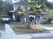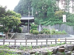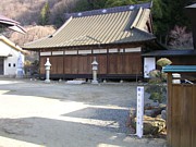 中:本堂の前から山門を見る。勝頼の嫡男信勝は新府城での篭城抗戦を主張したが受け入れられず、ここで元服の儀式を行った。