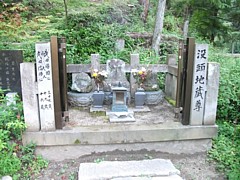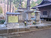 中:甲将殿を背景にして中央に勝頼・右に夫人・左に信勝の墓。没後200年の安永四年(1775)に遠忌を行った際に建立された。