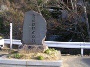 中:四郎作古戦場の碑。讒言により蟄居していた武田の重臣小宮山内膳は勝頼の危急を知り「譜代の臣が主家最後の戦いに加われなければ
