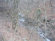 中:すぐ横を流れ下る日川の清流。川沿いの道は大菩薩嶺の西南を迂回して裂石集落で青梅街道(国道411号)に合流する。