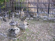 左:本来の位置である甲将殿の裏側に戻された墓石群。
