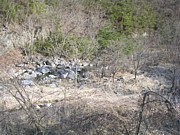 中:勝頼夫妻の生害石遠景。左側が正室(継室)の北条夫人(北条氏康娘・享年18歳)、右側が勝頼(信玄の庶子・享年36歳)。