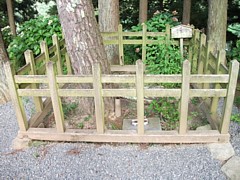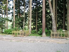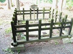 中:柵に囲まれた廟所には高さ3尺ほどの宝篋印塔が2基、その周辺を家臣の墓と思われる五輪塔が囲む。