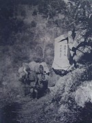 左:大正3年撮影の土屋惣蔵片手切。炭俵を積んだ馬が通る姿が写っている。谷川は斬り落とされた兵の血で三日間も赤く染まったという。