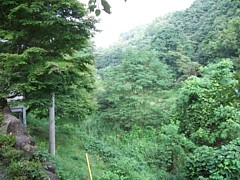 右:栖雲寺と田野の中間にある「土屋惣蔵片手切」。栖雲寺へ向った勝頼らは追撃軍と遭遇して再び田野へ。側近の土屋惣蔵昌恒は狭い崖道で
