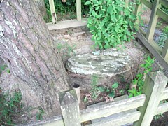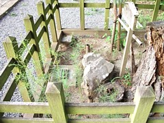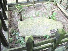 左&中:勝頼の正室・北条夫人の生害石。 辞世・・・黒髪の乱れたる世ぞ果しなき思いに消ゆる露の玉の緒