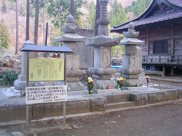 一族の位牌が残る甲将殿の裏が本来の墓所だが、この時は甲将殿の左に移設中だった。