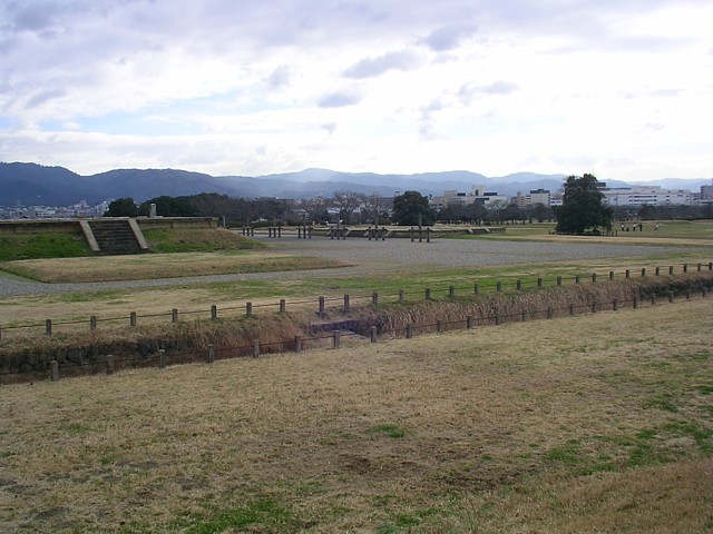 第二次大極殿跡の西側(第一次大極殿側)から撮影。ここは平安遷都まで約40年間使われた。