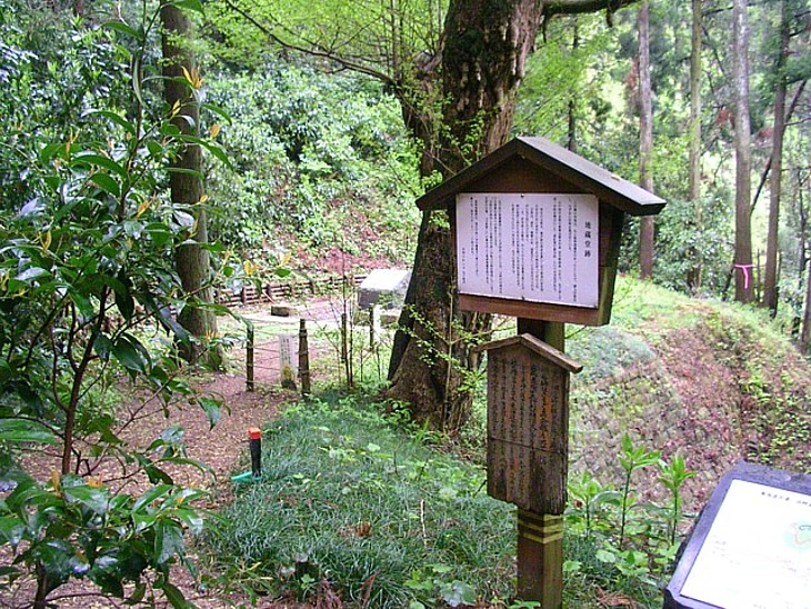 切り通し下の地蔵堂跡。道が廃れると地蔵菩薩は麓に下ろされ、今はお羽織茶屋裏の慶龍寺に祀られている。