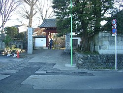 中: 左手の築地塀の一角が忠度の墓所。他にも4月中旬に花を開く忠度桜や忠度の腕塚、千姫供養塔、江戸時代の板碑などがある。