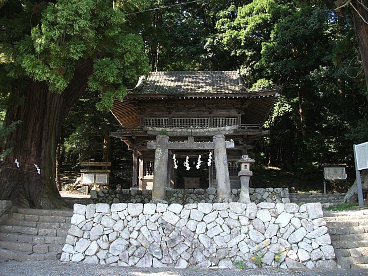 門前の三の鳥居は県の指定文化財。高さ約2.7mの自然石造りで、天正十二年の修理銘がある。