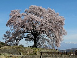 「韮崎 鰐塚 桜」で検索すると満開の画像が幾らでも見つかる。4月初旬の花期には八ヶ岳を背景に撮影するために都会の歩行者天国並みの混雑を呈する。