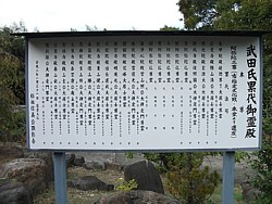 左: 信義館跡に掲示されている「武田乃郷」の旧蹟分布図。かなり詳細な地図なのでこの地域の史蹟の探訪には欠かせない。