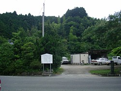 中: 県道から民家の敷地を抜けて登った斜面が砦跡。少し北の農地には「殿のお城」などと呼ばれる水田もあり、信綱の館跡と思われている。