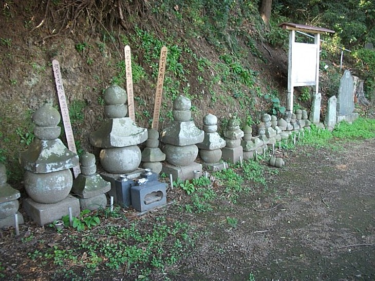 土屋一族の墓所は星光山大乗院から細道を300mほど南に下った谷沿いの斜面にある。