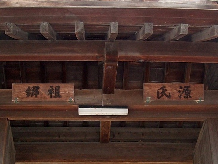 山門の「源氏祖郷」板額。年代は判らないが、子孫の多田義直あるいは徳川氏が掲げたかも。