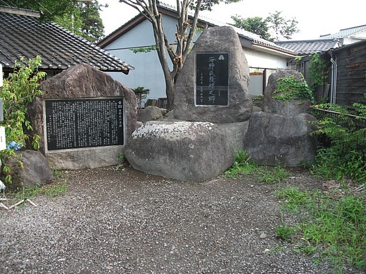 白鳥神社の前に建つ「海野氏発祥之郷」の碑。書は東部町長(合併以前)の保科俶教氏。