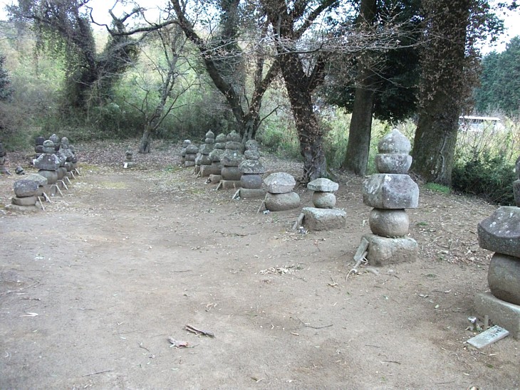 廟所は巾10m×奥行20mほどの平場にある。一番奥の小さな五輪塔が初代宗円の墓標。