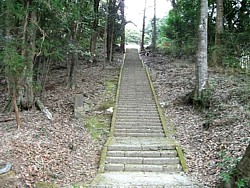 左&中: 150mほど続く参道は二の鳥居から細い石段に続き社殿の建つ平場に登る。右手の細道を辿ると地蔵院に抜けられる。