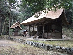 祈った後に罪を許されたため帰国後に勧請した。社殿は室町期の建造で共に萱葺きだが綱神社の屋根は台風による倒木で破損し、半年ほど