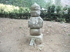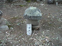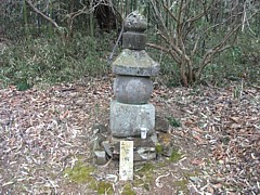中: 廟所は巾10m×奥行20mほどの平場に設けられている。一番奥の中央にある小さな五輪塔が初代宗円の墓標と伝わっている。