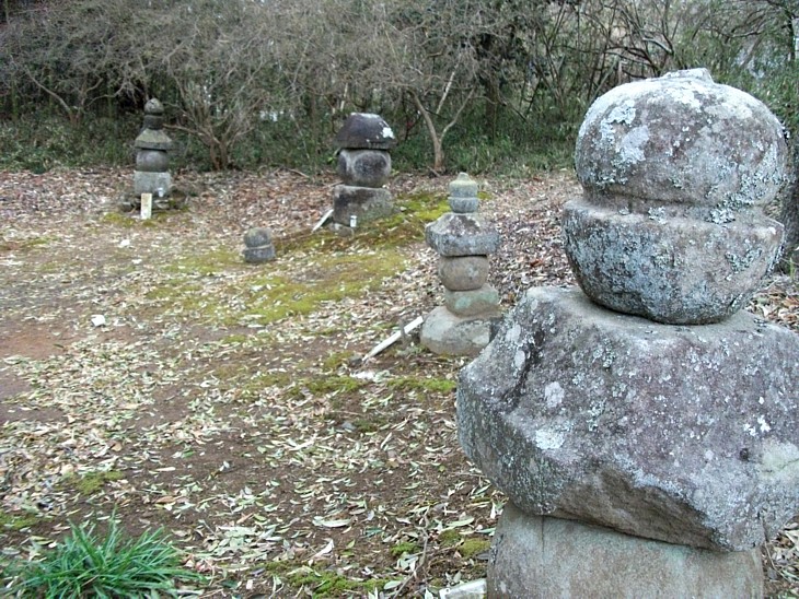 四代業綱の横から撮影。初代宗円(兼綱)、三代朝綱、二代宗綱の墓石が続く。