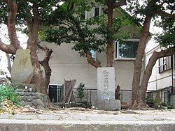 左: 江ノ電で鎌倉駅から一つ目、のんびり歩いても700mの和田塚駅。和田塚は50m先で、約300m東には若宮大路の一の鳥居がある。