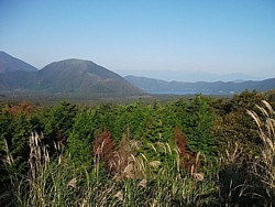 左: 白糸の滝を過ぎて人穴から県道71号で北上。暫くは牧場などが点在するがやがて道は樹海に囲まれ、正面には富士山の側火山で独立峰っぽく