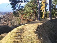 置かれていたと思われる「六の郭」跡が残っており、ここは現在は農家の住居となっている。西側の搦め手虎口(裏側の重要な出入口)の小山部分・西の出丸には